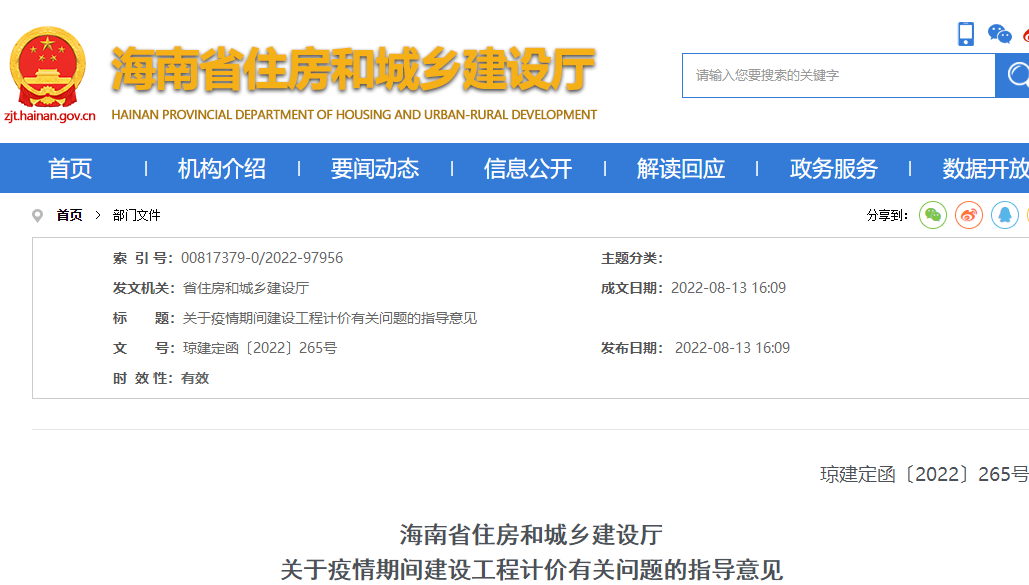 海南住建廳關(guān)于疫情期間建設工程計價(jià)有關(guān)問(wèn)題的指導意見(jiàn)