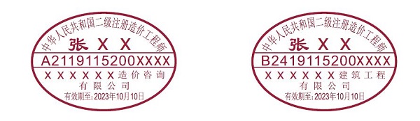 注意:由于建設部從2021年7月1日起取消造價(jià)資質(zhì),在沒(méi)有新的管理規定出臺之前,執業(yè)印章按原規定執行(即原先擁有造價(jià)資質(zhì)的企業(yè)人員,執業(yè)印章號碼前加前綴A,沒(méi)有造價(jià)資質(zhì)企業(yè)人員,執業(yè)印章號碼前加前綴B)。