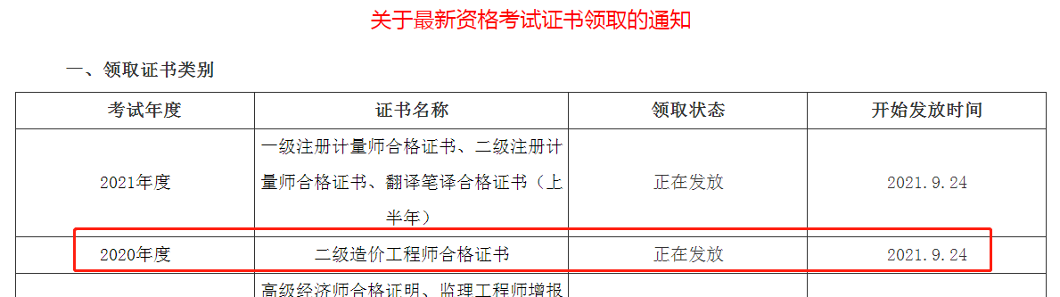 四川資陽(yáng)2020年二級造價(jià)師證書(shū)辦理及領(lǐng)取通知