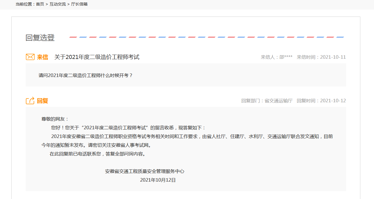 安徽2021年二級造價(jià)師考試什么時(shí)候舉行