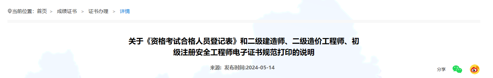 關(guān)于《資格考試合格人員登記表》和二級建造師、二級造價(jià)工程師、初級注冊安全工程師電子證書(shū)規范打印的說(shuō)明官方通知如下: