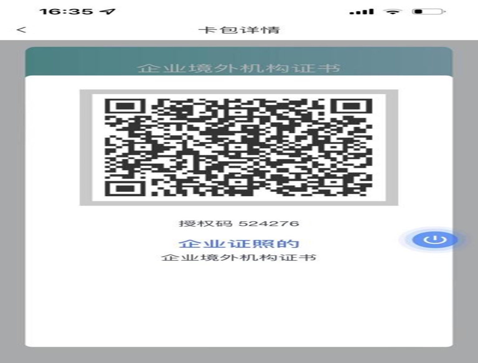4、選擇要使用的證照,如下圖的【企業(yè)境外機構證書(shū)】,可進(jìn)行授權、亮證、查看使用記錄、進(jìn)行電子證照下載。