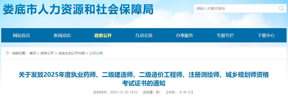 關(guān)于發(fā)放2025年度執(zhí)業(yè)藥師、二級(jí)建造師、二級(jí)造價(jià)工程師、注冊(cè)測繪師、城鄉(xiāng)規(guī)劃師資格考試證書的通知