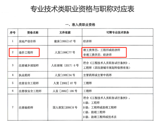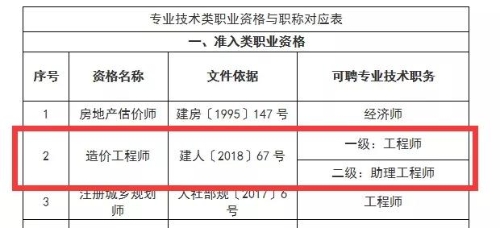 其中,取得一級造價(jià)工程師資格的人員,可聘任工程師職務(wù);取得二級造價(jià)工程師資格的人員,可聘任助理工程師職務(wù)。
