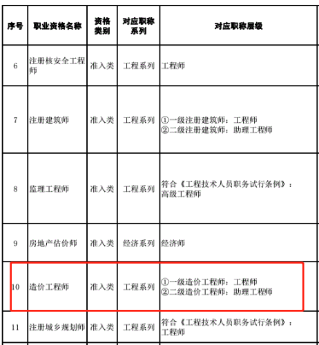 二級造價(jià)師職業(yè)資格與職稱(chēng)對應關(guān)系