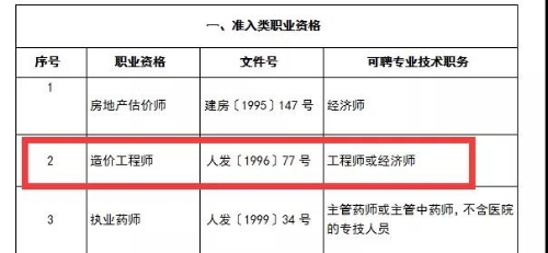 其中,造價(jià)工程師可聘任工程師或經(jīng)濟師職務(wù)。