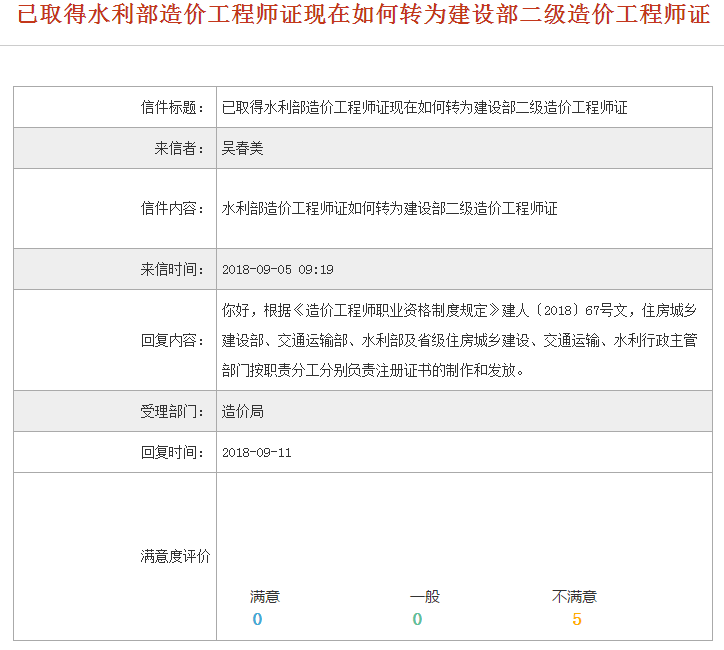 網(wǎng)友提問(wèn):已取得水利部造價(jià)工程師證現在如何轉為建設部二級造價(jià)工程師證?