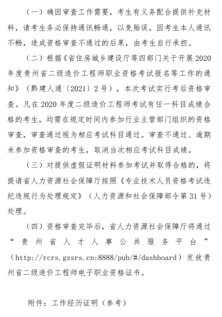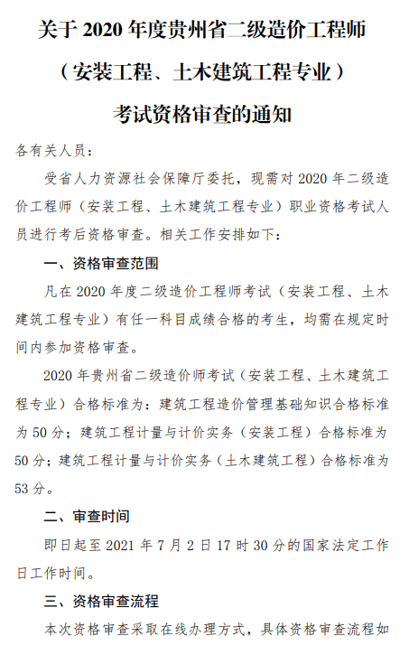 關(guān)于2020年度貴州省二級造價(jià)工程師(安裝工程、土木建筑工程專(zhuān)業(yè))考試資格審查的通知
