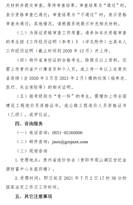 2020年貴州省二級造價(jià)工程師考試資格審查的通知