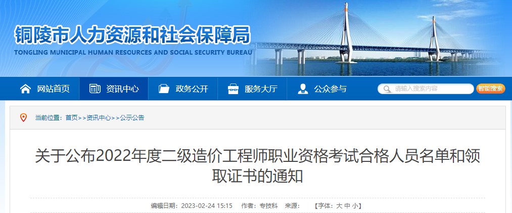 關(guān)于公布2022年度二級造價(jià)工程師職業(yè)資格考試合格人員名單和領(lǐng)取證書(shū)的通知