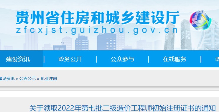 ?貴州關(guān)于領(lǐng)取2022年第七批二級造價(jià)工程師初始注冊證書(shū)的通知