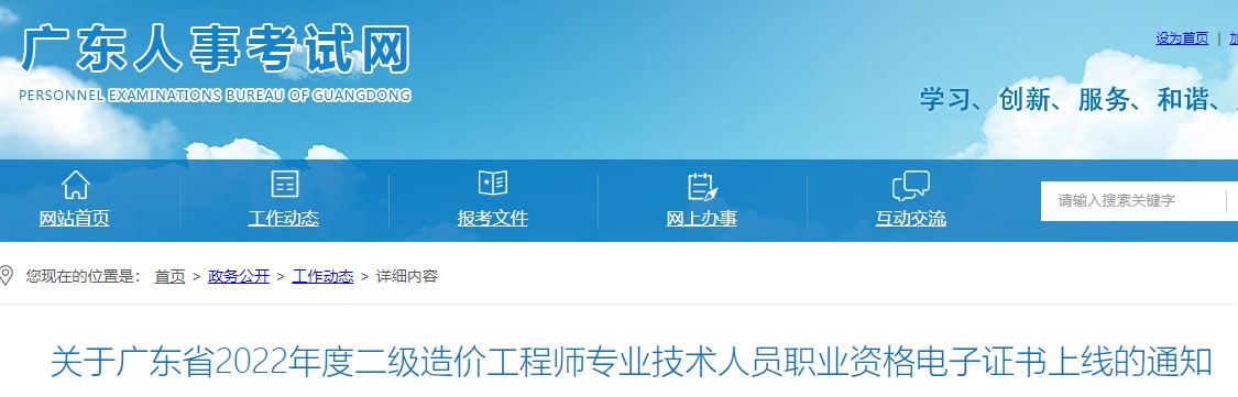 關(guān)于廣東省2022年度二級造價(jià)工程師專(zhuān)業(yè)技術(shù)人員職業(yè)資格電子證書(shū)上線(xiàn)的通知