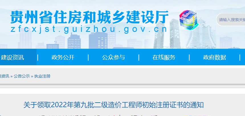 貴州省?關(guān)于領(lǐng)取2022年第九批二級造價(jià)工程師初始注冊證書(shū)的通知