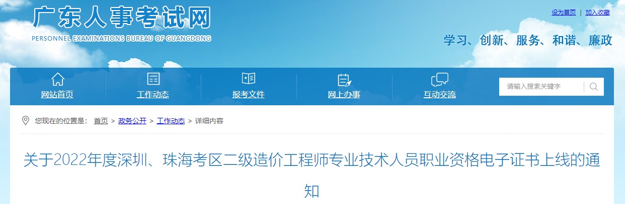 關(guān)于2022年度深圳、珠??紖^二級造價(jià)工程師專(zhuān)業(yè)技術(shù)人員職業(yè)資格電子證書(shū)上線(xiàn)的通知