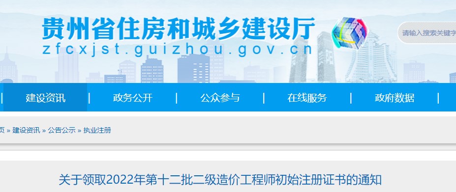貴州省?關(guān)于領(lǐng)取2022年第十二批二級造價(jià)工程師初始注冊證書(shū)的通知