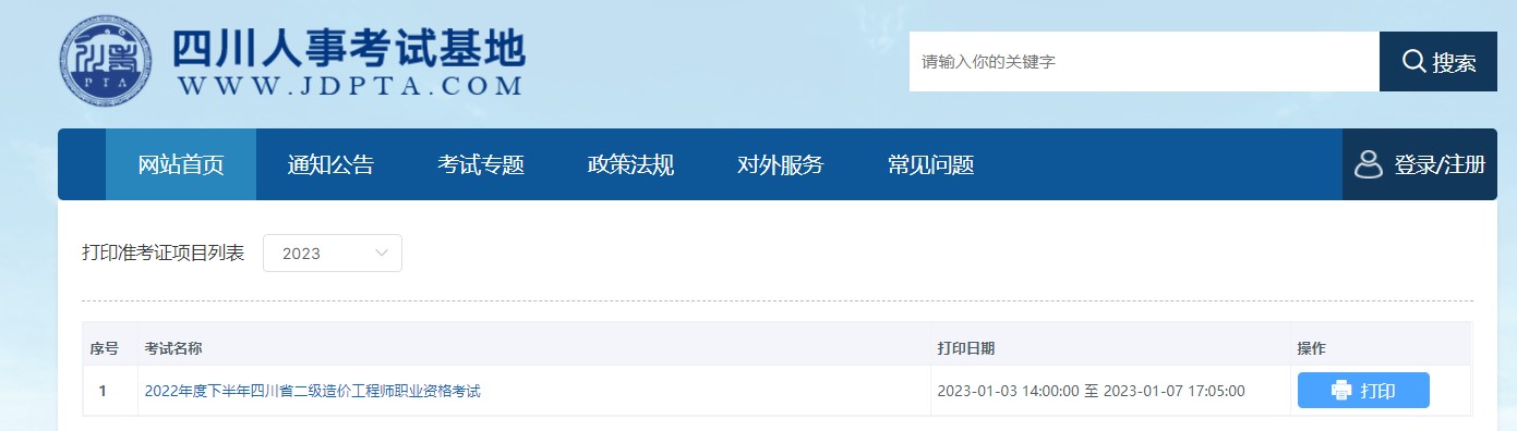 準考證打印入口:四川人事考試基地-打印準考證