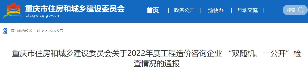 重慶關(guān)于2022年度工程造價(jià)咨詢(xún)企業(yè)“雙隨機、一公開(kāi)”檢查情況的通報