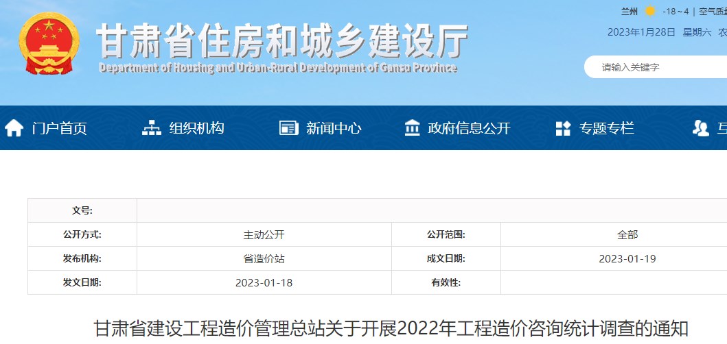 甘肅建設工程造價(jià)管理總站關(guān)于開(kāi)展2022年工程造價(jià)咨詢(xún)統計調查的通知