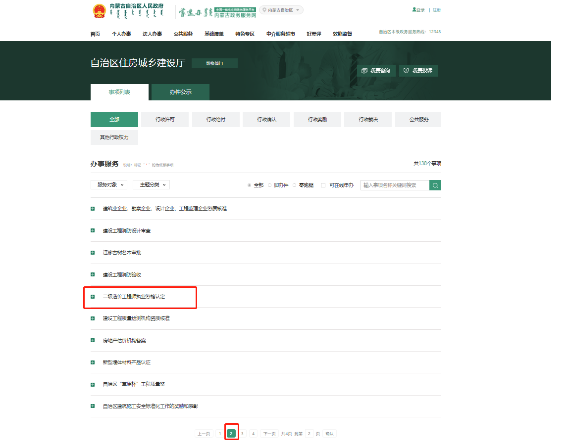 (1)二級造價(jià)師本人登錄內蒙古政務(wù)服務(wù)網(wǎng)