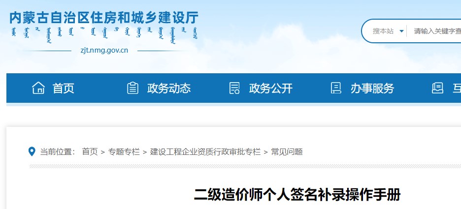 內蒙古住建廳發(fā)布關(guān)于二級造價(jià)工程師個(gè)人簽名補錄操作手冊