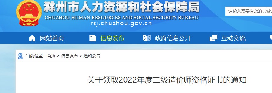 安徽滁州關(guān)于領(lǐng)取2022年度二級造價(jià)師資格證書(shū)的通知