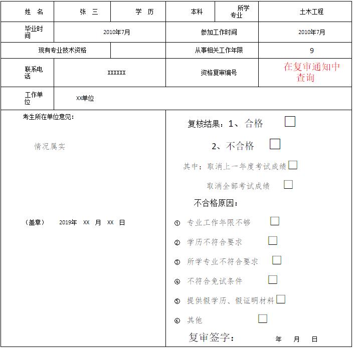 4、復審人員按照樣表填寫(xiě)自己的實(shí)際情況。