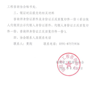 福建省2021年咨詢(xún)工程師證書(shū)領(lǐng)取時(shí)間是2021年8月24日至11月30日,相關(guān)通知如下:
